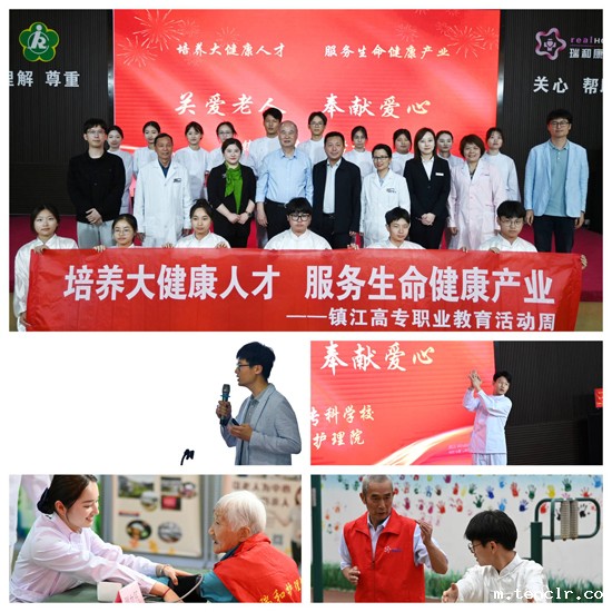 为深入学习贯彻党的二十大精神和习近平总书记关于职业教育的重要指示批示精神,大力弘扬劳动光荣、技能宝贵、创造伟大的时代风尚,根据江苏省教育厅《教育部等十部门关于做好2023年职业教育活动周相关工作的通知》精神,五月中旬镇江高专产教融合处组织hth网页版登录入口官网师生及体育部孙氏太极拳传承基地师生,前往位于长山脚下的瑞和护理院,开展了主题为“培养大健康人才,服务生命健康产业”的关爱老人、奉献爱心活动。